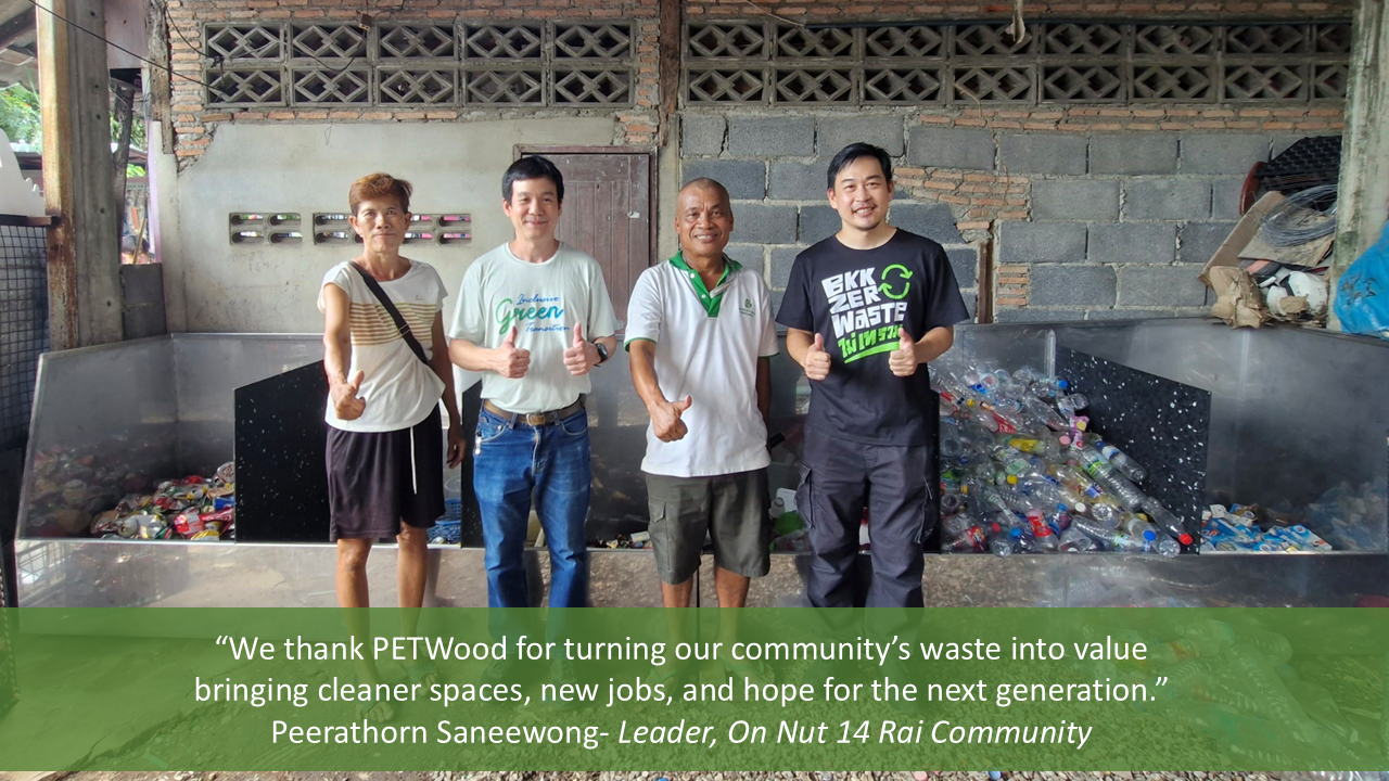 The Onnut GEDSI initiative demonstrates that circular innovation and inclusion can go hand in hand. By turning waste into worth, PETWood creates a positive cycle of income, empowerment, and impact — improving livelihoods while reducing pollution in Bangkok’s urban communities.