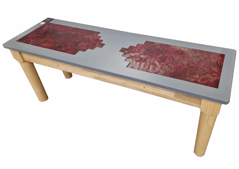 Built using low-energy thermo-compression technology, the tabletop showcases a unique marbled texture from blended PET and PLA waste — making every table one-of-a-kind. Waterproof, termite-resistant, and durable for both indoor and outdoor use, it stands as proof that waste can become beautiful, functional art.